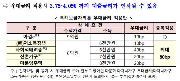 우대금리를 적용받게 되면 최대 0.8p 낮은 금리를 적용 받아 3.75~4.05&까지 대출금리가 인하될 수 있습니다.