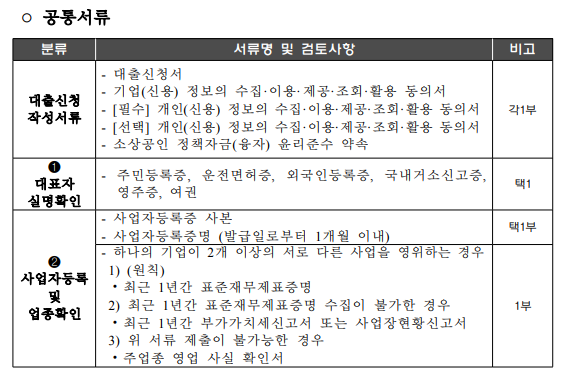 소상공인,정책자금 제출서류