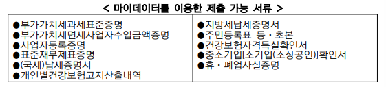 온라인 신청시 마이테이터를 통해 아래 서류 제출이 가능하며 그 외 필요시 공통서류 제출이 필요합니다.